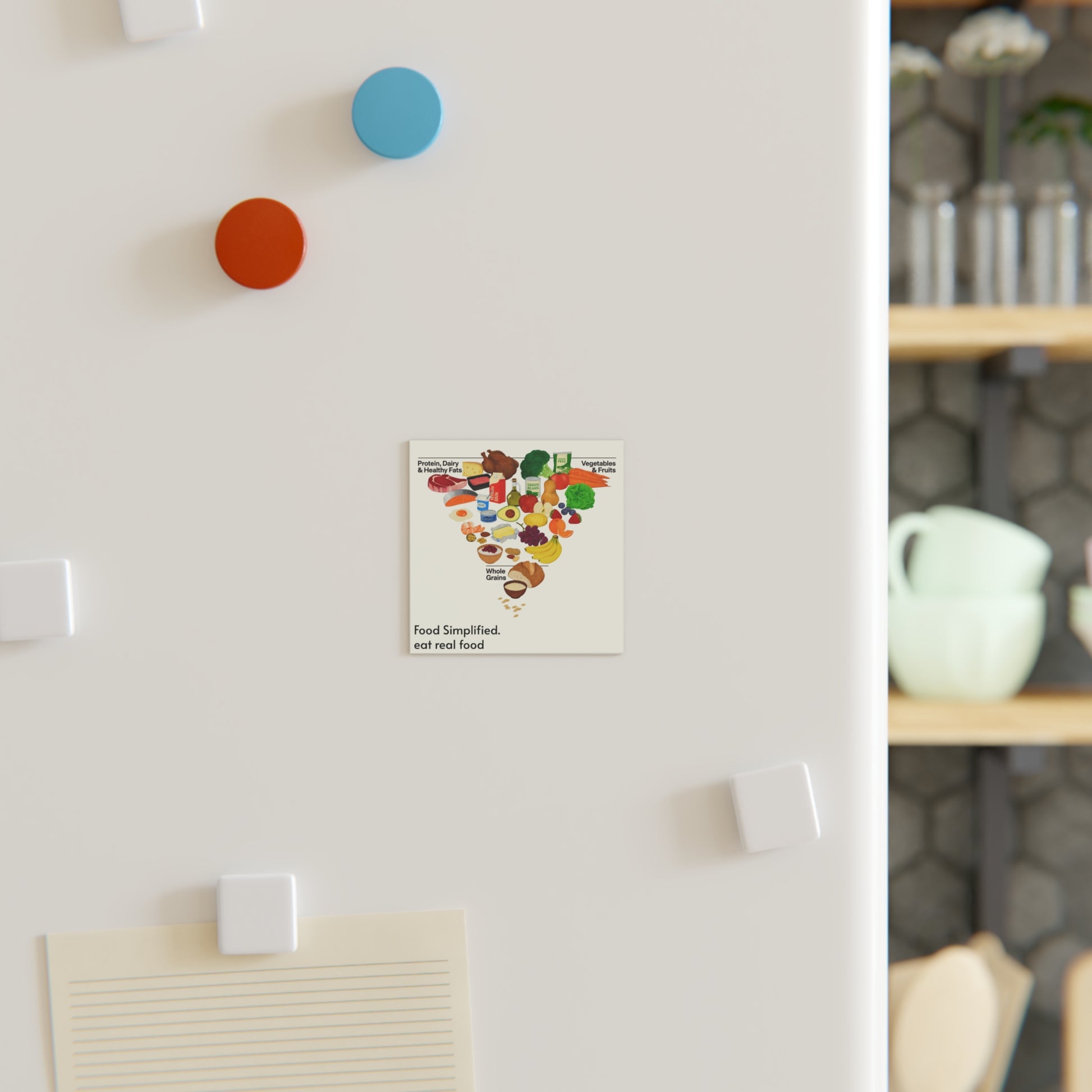 Healthy Eating Pyramid Square Magnet — "Food Simplified. eat real food" Refrigerator Magnet